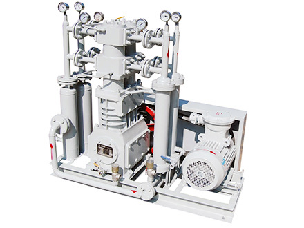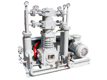 天然氣壓縮機(jī)是我公司自主研發(fā)的新型產(chǎn)品,往復(fù)活塞式結(jié)構(gòu) 。該機(jī)集壓縮機(jī)、冷卻器、電機(jī)、冷卻系統(tǒng)、共用底架等為一體。減少了占地面積,節(jié)省投資 ,方便操作,可為用戶最大限度的創(chuàng)造經(jīng)濟(jì)效益。該產(chǎn)品氣缸 、填料部件為無油潤滑,保證了其工作介質(zhì)的純度。曲軸、連桿、十字頭部件為壓力潤滑,以保證潤滑的可靠性。