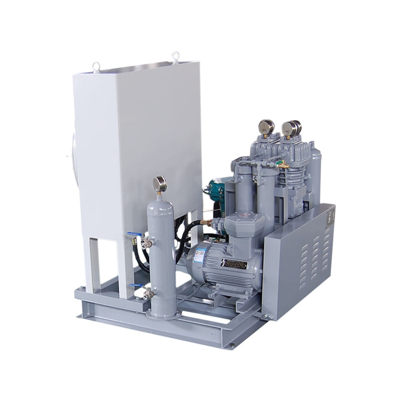 井口氣壓縮機是我公司新型產(chǎn)品,它集壓縮機、氣液分離器、安全閥冷卻器、電動機等為一體,成一完整的機組。具有功能多、體積小、重量輕、功率小、運行平穩(wěn)可靠等特點,并有良好的安全性能。它為輸送井口氣,可為用戶最大限度地創(chuàng)造經(jīng)濟效益。由于采用獨特的無油潤滑設(shè)計,氣缸內(nèi)無需用油潤滑,因而不會對介質(zhì)造成污染,使被輸送物質(zhì)保持純凈。本機設(shè)計成機組型式,許多管線上的附件都安裝在機組上,省卻了氣液分離器、穩(wěn)壓罐、安全閥、進(jìn)氣過濾器等,減小了機房的面積,減少了操作維護工作量,節(jié)省了投資。