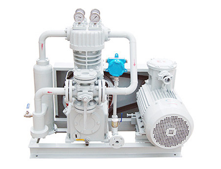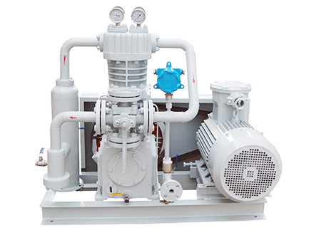 氣氨壓縮機(jī)壓縮機(jī)是我公司新型產(chǎn)品,它集壓縮機(jī)、氣液分離器、安全閥冷卻器、電動(dòng)機(jī)等為一體,成一完整的機(jī)組。具有功能多、體積小、重量輕、功率小、運(yùn)行平穩(wěn)可靠等特點(diǎn),并有良好的安全性能。它為輸送氫氣,可為用戶(hù)最大限度地創(chuàng)造經(jīng)濟(jì)效益。由于采用獨(dú)特的無(wú)油潤(rùn)滑設(shè)計(jì),氣缸內(nèi)無(wú)需用油潤(rùn)滑,因而不會(huì)對(duì)介質(zhì)造成污染,使被輸送物質(zhì)保持純凈。本機(jī)設(shè)計(jì)成機(jī)組型式,許多管線上的附件都安裝在機(jī)組上,省卻了氣液分離器、穩(wěn)壓罐、安全閥、進(jìn)氣過(guò)濾器等,減小了機(jī)房的面積,減少了操作維護(hù)工作量,節(jié)省了投資。