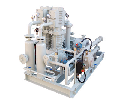 氫氣壓縮機(jī)壓縮機(jī)是我公司新型產(chǎn)品,它集壓縮機(jī)、氣液分離器、安全閥冷卻器、電動(dòng)機(jī)等為一體,成一完整的機(jī)組。具有功能多、體積小、重量輕、功率小、運(yùn)行平穩(wěn)可靠等特點(diǎn),并有良好的安全性能。它為輸送氫氣,可為用戶最大限度地創(chuàng)造經(jīng)濟(jì)效益。由于采用獨(dú)特的無(wú)油潤(rùn)滑設(shè)計(jì),氣缸內(nèi)無(wú)需用油潤(rùn)滑,因而不會(huì)對(duì)介質(zhì)造成污染,使被輸送物質(zhì)保持純凈。本機(jī)設(shè)計(jì)成機(jī)組型式,許多管線上的附件都安裝在機(jī)組上,省卻了氣液分離器、穩(wěn)壓罐、安全閥、進(jìn)氣過(guò)濾器等,減小了機(jī)房的面積,減少了操作維護(hù)工作量,節(jié)省了投資。